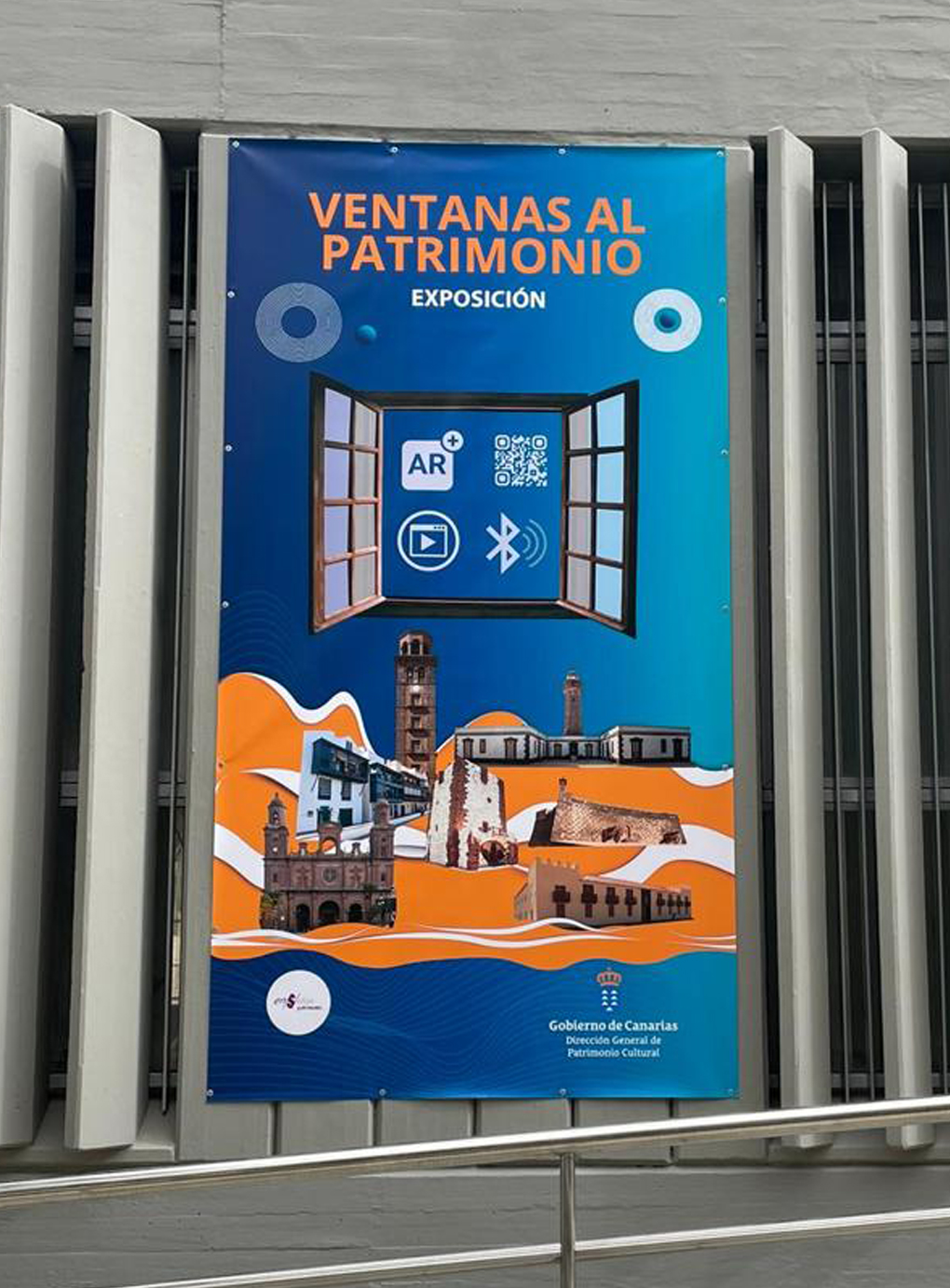 Valla principal colocada en entrada de la biblioteca.