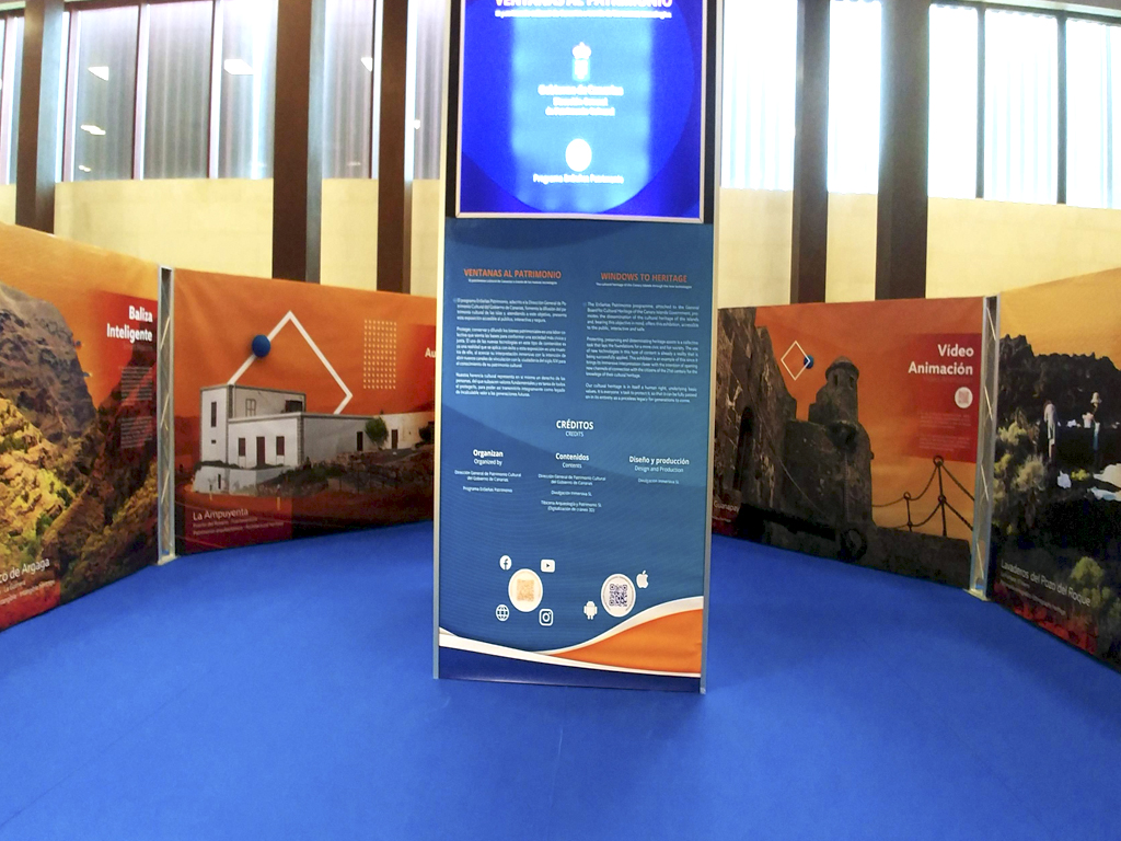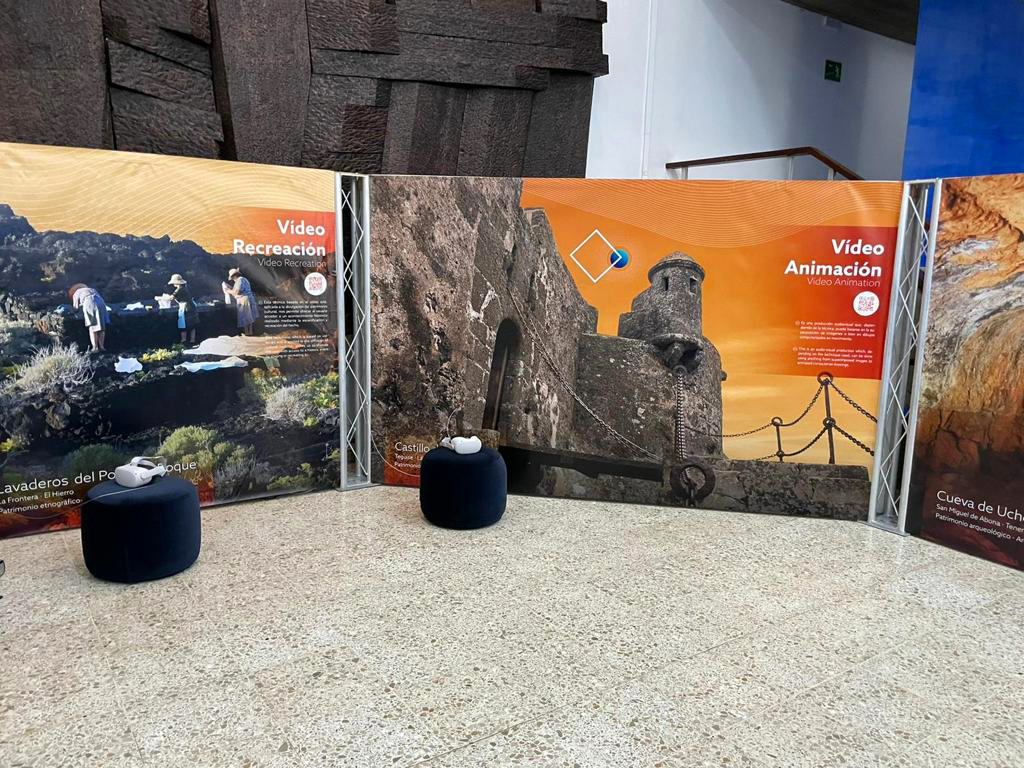 Un proyecto realizado por Divulgación Inmersiva para la Universidad de La Laguna y el Gobierno de Canarias. Diseño de extructura con paneles informativos, totem cúbico con monitores y audiovisuales, balizas de audio activadas con sensores de movimiento, vídeo 3D de enterramiento guanche, diseño completo de una APP con realidad aumentada.